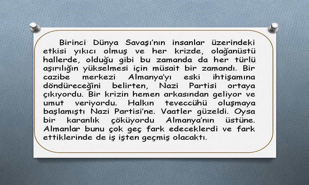Bazı zamanlar olur, hava birden kararır, pus her tarafı sarar, önünüzü görmekte zorlanırsınız. Göz gözü görmez, insanlar birçok duygusunu yitirir, akıl melekesini ve vicdanını kaybeder. Ummadığınız insanların içinden bir canavar çıkar ve her şeye saldırır. Gerçekleri olduğundan farklı algılar, yalan söyler, söylediklerine inanır ve yalanlarına inanmayanlara eziyet eder. Hatta bunu kendisine görev addeder.